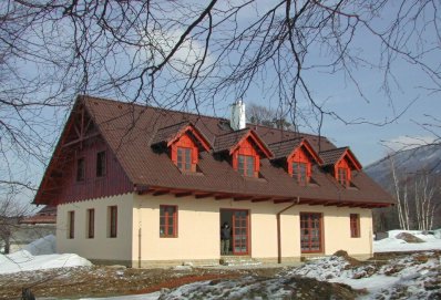 Konstrukn een : Monolitick betonov zkladov pasy, nosn systm + stropy Porotherm, termofasda, tesask konstrukce krovu, skldan sten krytina Bramac, devn Euro okna, oplechovn v mdi, sokl vyzdvan z prodnho kamene.